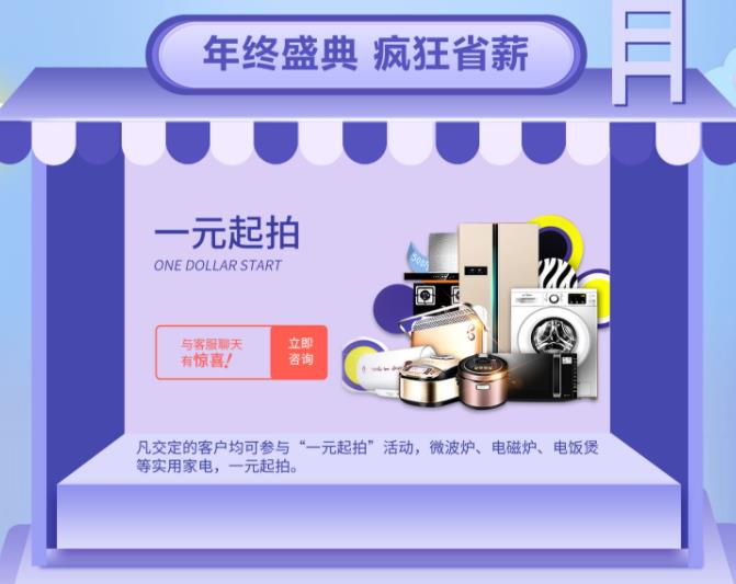 4.一元起拍:凡交定的客戶均可參與“一元起拍”活動,微波爐、電磁爐、電飯煲等實用家電,一元起拍。